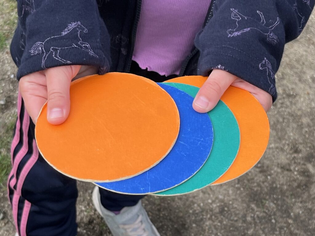 Nach jeder gelaufenen Runde erhielten die Kinder einen farbigen Kreis. Diese wurden am Ende gesammelt und dienen als Grundlage für die Auswertung: Entsprechend der erreichten Rundenzahl werden die Schülerinnen und Schüler ihrem Rang innerhalb des Jahrgangs zugeordnet.