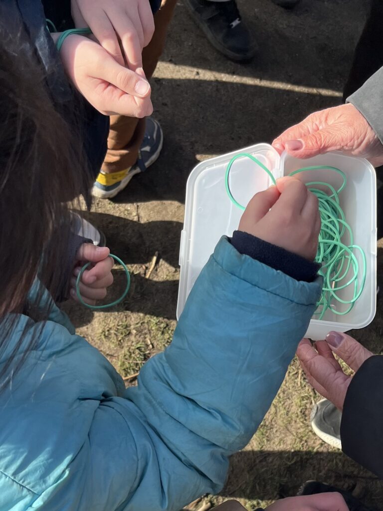 Bei zunächst sonnigem Wetter und später sogar ein wenig Regen drehten unsere Schülerinnen und Schüler Runde um Runde. Für jede gelaufene Runde bekamen die Kinder ein Gummiband. Nach Ablauf der Zeit wurden diese gezählt und die entsprechenden Runden auf den Sponsorenkarten vermerkt. Im Vorfeld hatten die Kinder fleißig die Sponsorenkarten ausgefüllt und Unterstützer aus ihrem Umfeld – Eltern, Verwandte, Nachbarn und Freunde – gewonnen.