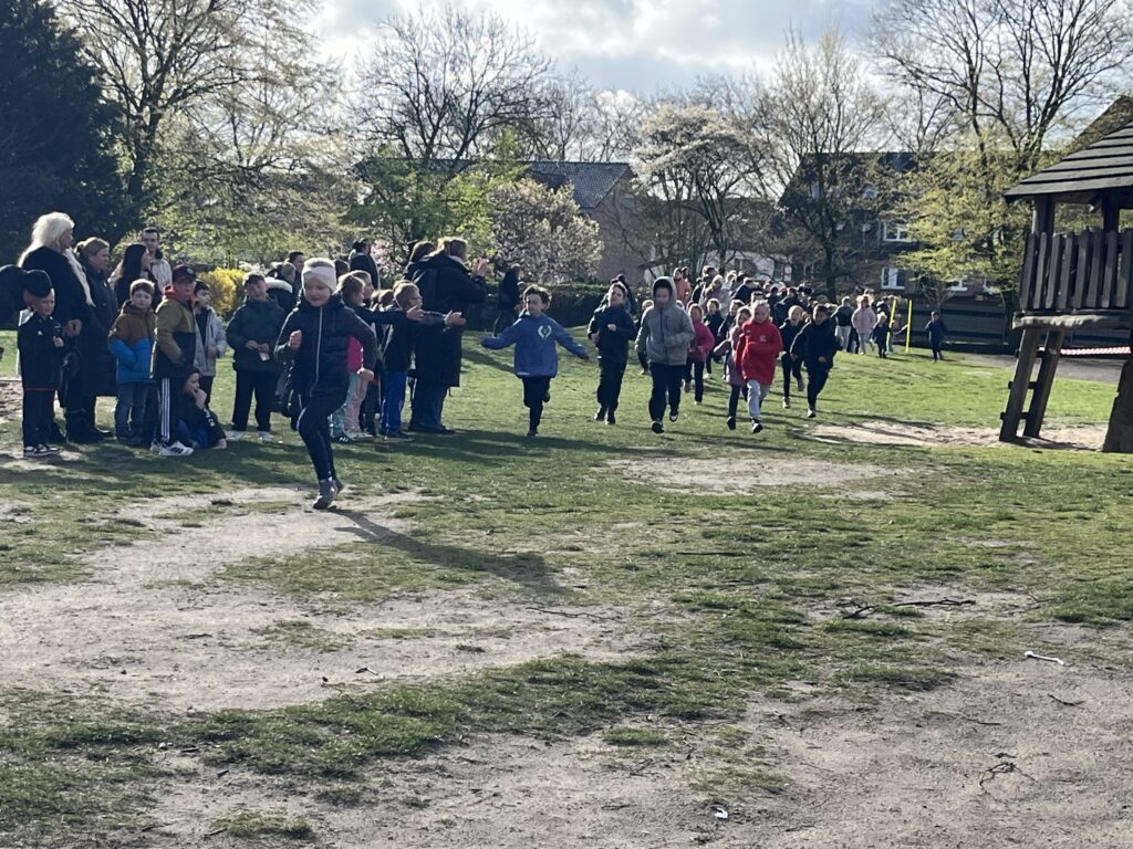 In einer tollen Atmosphäre feuerten sich zunächst die Kinder der Jahrgänge 1 und 2 gegenseitig begeistert an. Im Anschluss gingen die Jahrgänge 3 und 4 an den Start und unterstützten sich ebenfalls lautstark. Begleitet von Musik feuerten auch Mamas, Papas, Omas und Opas die Kinder kräftig an, die ihr Bestes gaben und beeindruckenden Einsatz zeigten.